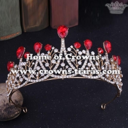 Alloy Crystal Red Leaf Shaped Wedding Queen Crowns